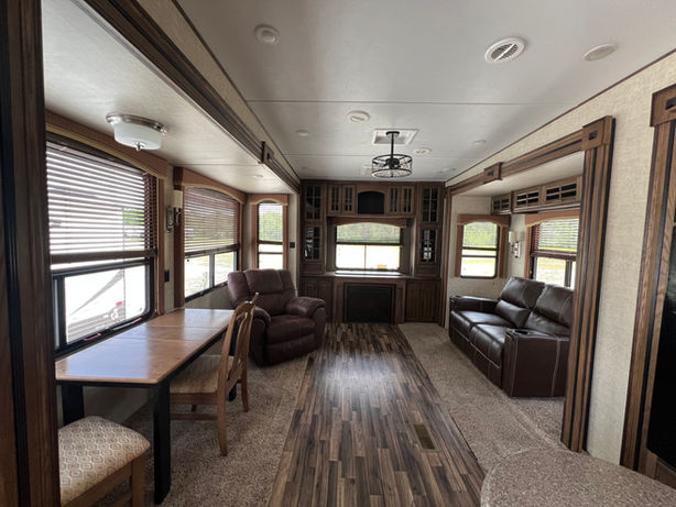 * open Floor Plan * Rear Entertainment * pop Up TV * Couch In Slide * Lazy Boy on opposite side * Table & Chairs * island with double sink * Refrigerator * 3 burner cook top / oven * microwave * large Shower * toilet * 70x80 Bed * Prepped for washer / Dryer * electric Awning *
